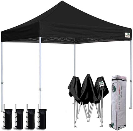 Amazon Com Eurmax 8x8 Feet Ez Pop Up Canopy Outdoor Canopies Instant Party Tent Sport Gazebo With Roller Bag Bonus 4 Canopy Sand Bags Black Outdoor Canopies Patio Lawn Garden